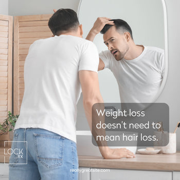 Hair undergoes a natural growth and resting phase. During the resting phase, known as telogen, hair strands gradually fall out to make room for new hair growth. An interruption in this cycle, especially due to rapid weight loss, can lead to excessive hair shedding or hair loss, a phenomenon known as telogen effluvium. While telogen effluvium is often considered temporary and not cause for permanent damage, there is growing concern that the hormonal shifts from these weight loss medications can trigger permanent early onset male and female hair loss, referred to as androgenetic alopecia, which can worsen over time and result in permanent hair damage. Those wishing to combat the potential debilitating side effects of weight loss medications are turning to nutraceutical hair supplements, like LOCKrx. This drug-free Healthy Inside Hair Support program can provide vital nutrients that support hair follicle health and may be lacking in a diet constrained by weight loss efforts. Integrating nutraceutical hair supplements like LOCKrx into one’s weight loss regimen can offer a variety of benefits. These include: